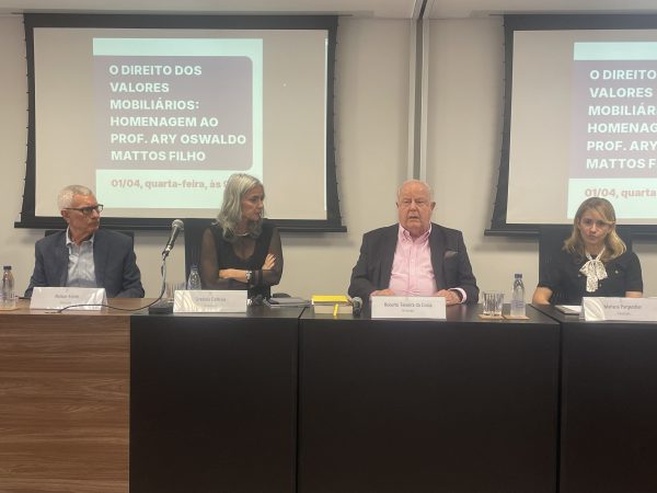 Trajetória do mercado de capitais brasileiro foi tema do encontro e era uma das especialidades do homenageado, um dos maiores nomes do Direito Empresarial no país, que presidiu a CVM, fundou a FGV Direito SP e teve papel fundamental no ambiente regulatório