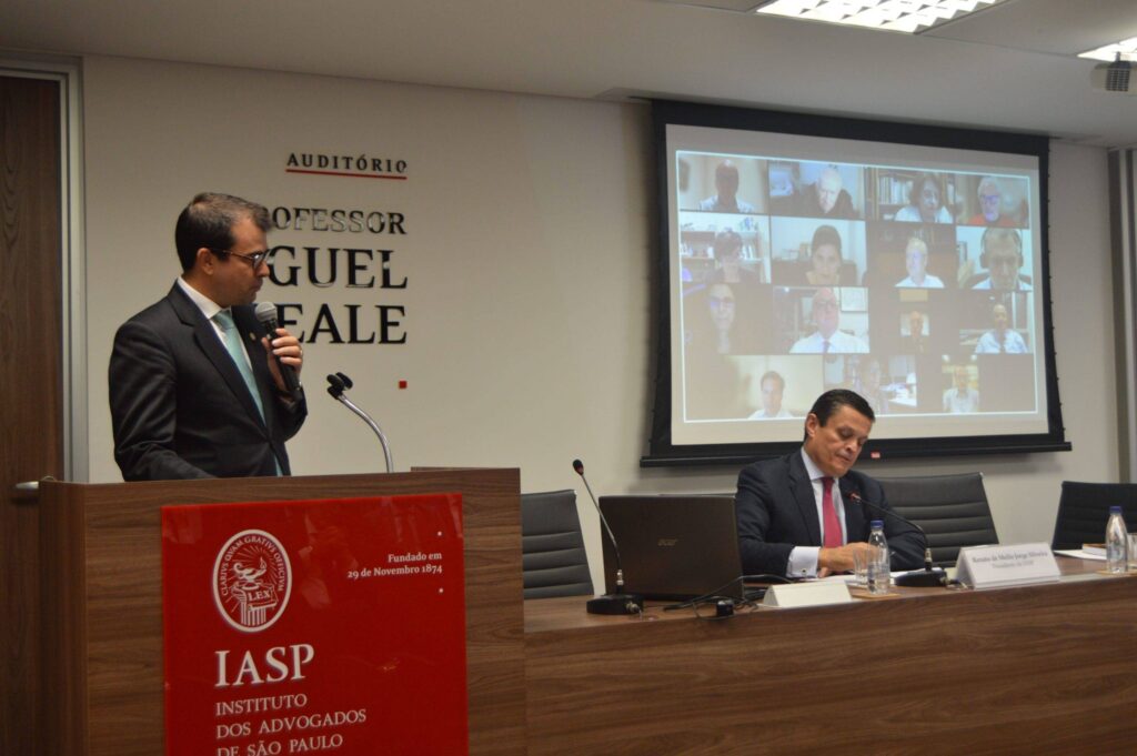 Diogo Leonardo Machado de Melo, diretor-administrativo do IASP, fez a homenagem aos novos associados, lembrando o discurso que ouviu quando de seu ingresso na instituição: “As decisões jurídicas estão cada vez mais fora das universidades e cada vez mais dentro dos centros de cultura, associações e institutos”.  Em seguida, comentou as realizações do IASP e seus destaques, como as 60 comissões de estudos à disposição dos associados, cursos à distância, convênios internacionais e as publicações da Editora IASP.