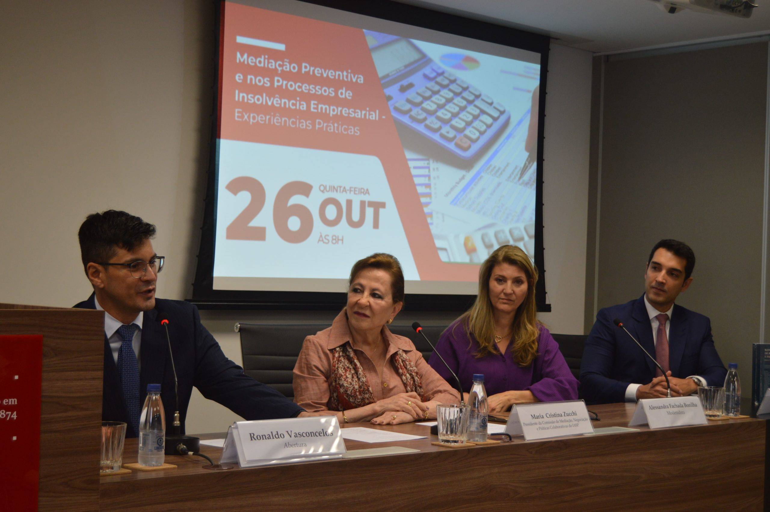 O Instituto dos Advogados de São Paulo (IASP) sediou na quinta-feira (26/10) o evento “Mediação Preventiva nos Processos de Insolvência Empresarial – Experiências Práticas”, sob organização da Comissão de Mediação, Negociação e Práticas Colaborativas e da Comissão de Direito Falimentar e Recuperacional do Instituto. O presidente da Comissão de Direito Falimentar, Ronaldo Vasconcelos, apontou na abertura do evento sua preocupação com profissionais que advogam sem técnicas de mediação: “Essa deve ser a primeira técnica”.