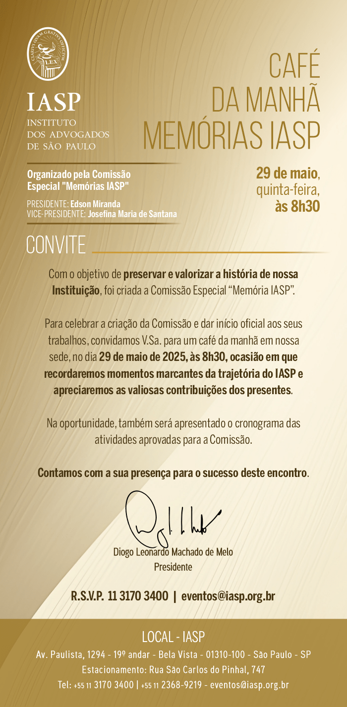 O Instituto dos Advogados de São Paulo – IASP tem a honra de