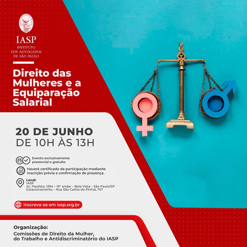 ♀️ O IASP convida a todos para o evento Direito das Mulheres e a Equiparação Salarial.