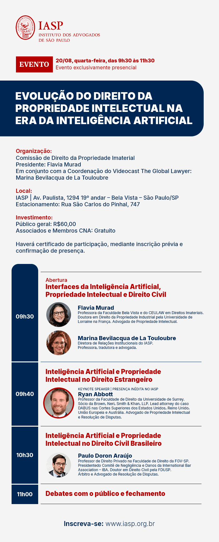 09h40 às 10h30: Inteligência Artificial e Propriedade Intelectual no Direito Estrangeiro