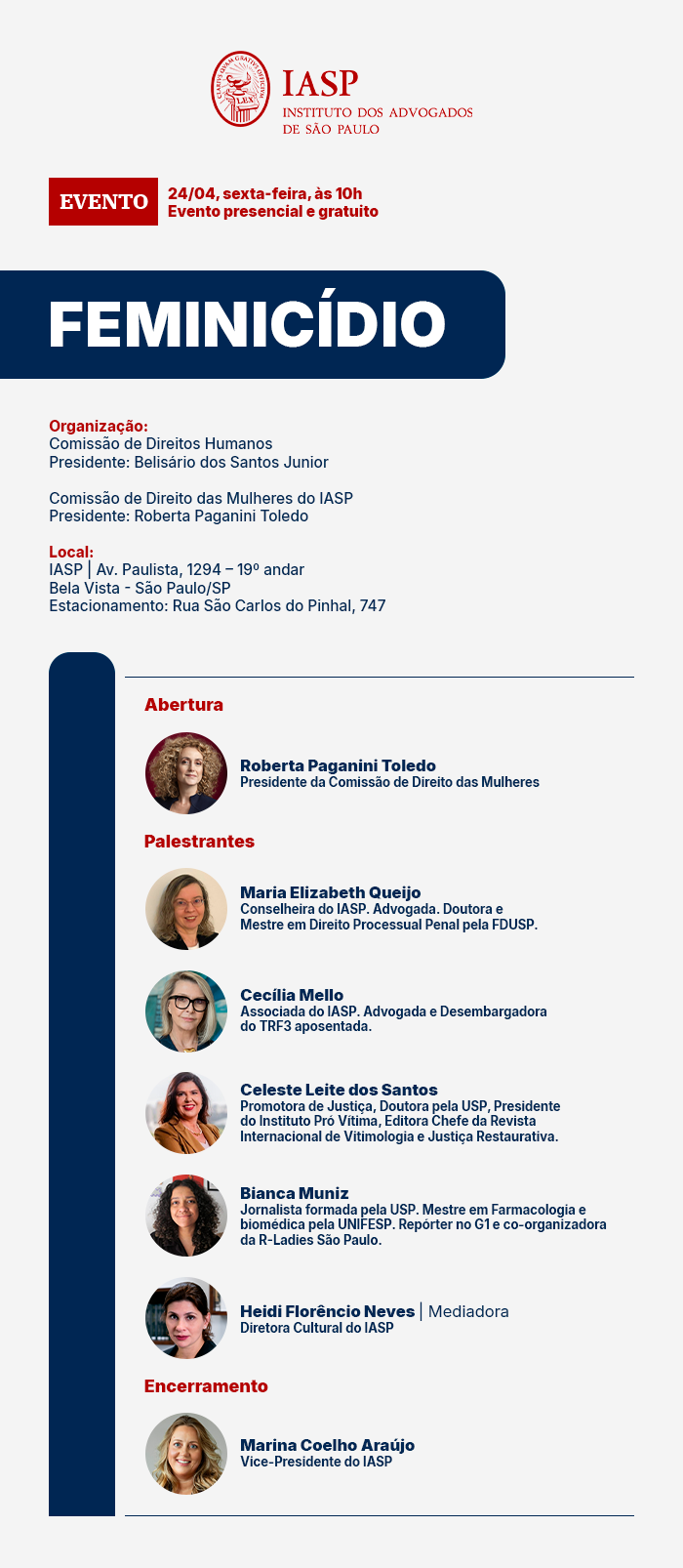 Mediação: Heidi Florêncio Neves – Diretora Cultural do IASP