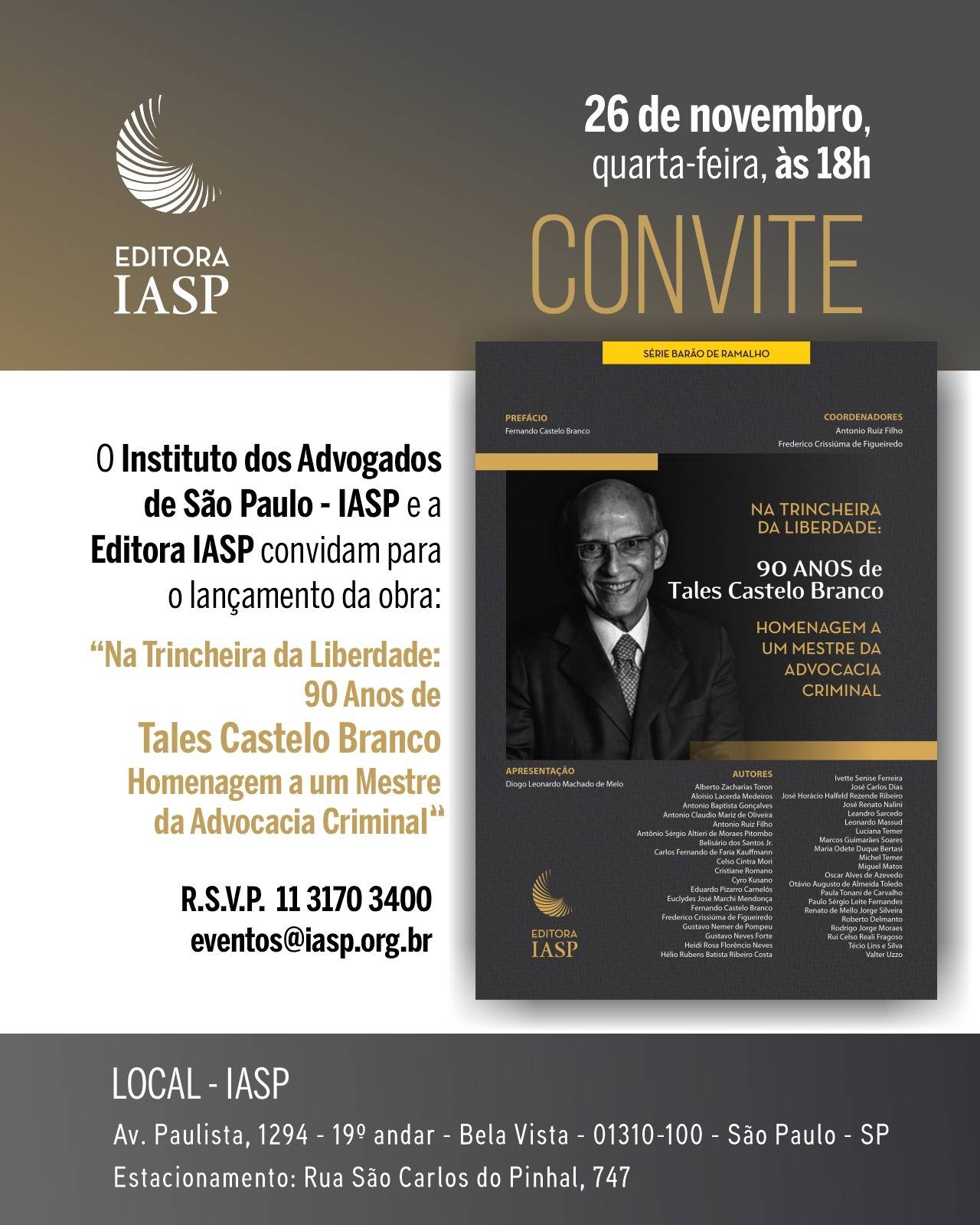Lançamento da obra “Na Trincheira da Liberdade: 90 Anos de Tales Castelo Branco Homenagem a um Mestre da Advocacia Criminal”