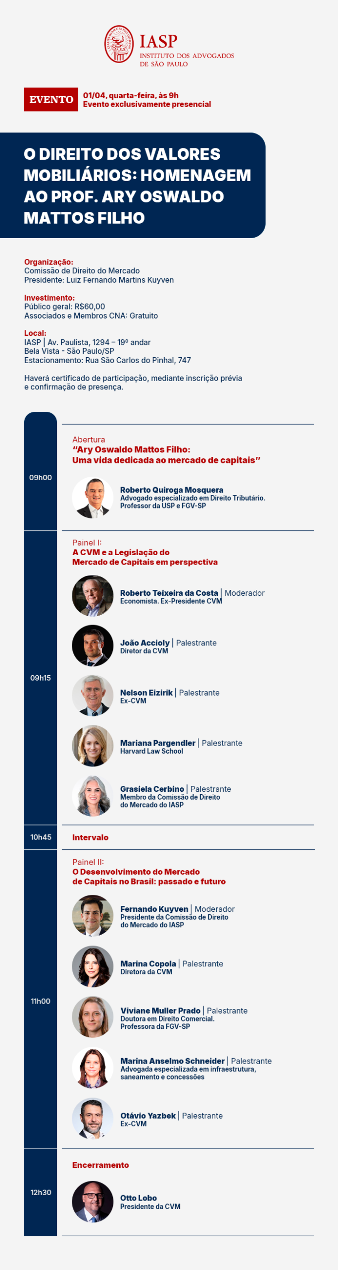 9h15 – Painel I: A CVM e a Legislação do Mercado de Capitais em perspectiva