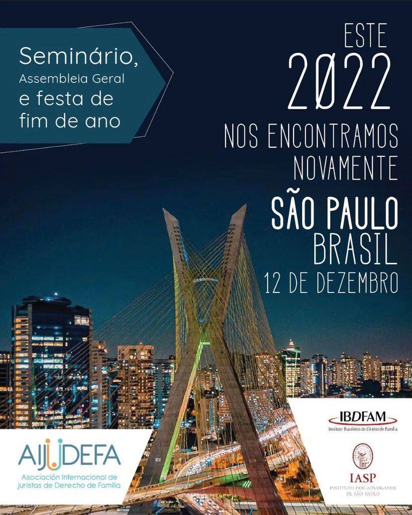 No dia 12 de dezembro de 2022, a AIJUDEFA – Asociación Internacional de Juristas de Derecho de Familia (Associação Internacional de Juristas de Direito de Família) realizará, com apoio do IASP, o Seminário, Assembleia Extraordinária e Festa de Confraternização da AIJUDEFA.