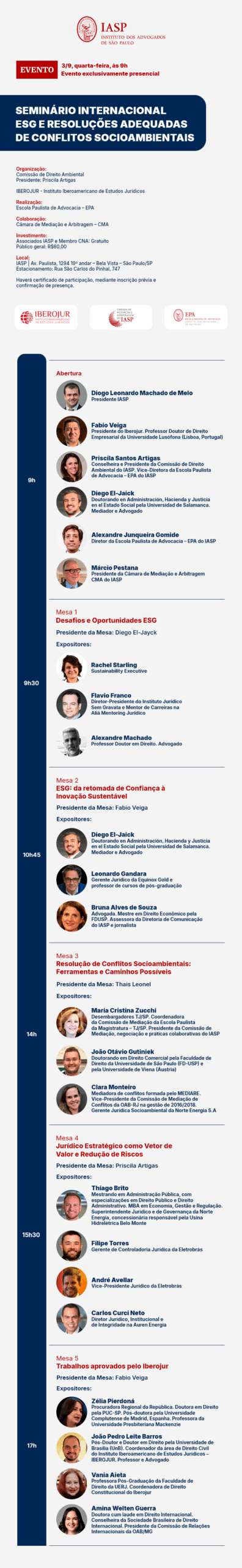 Investimento: Associados IASP e Membro CNA: Gratuito | Público geral: R$60,00