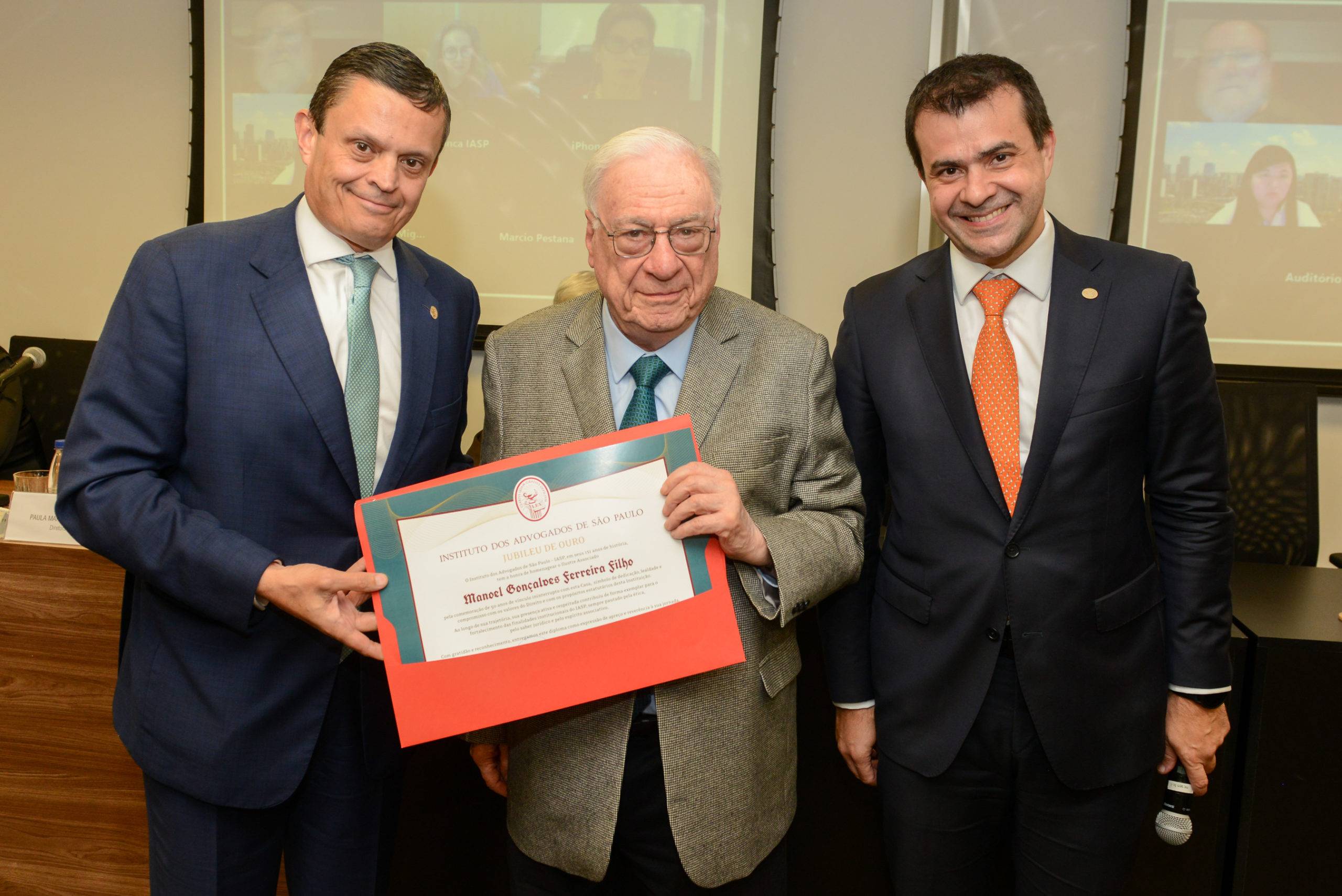 O Instituto dos Advogados de São Paulo (IASP) realizou, nesta quarta-feira, dia 27, a cerimônia de entrega da honraria Jubileu de Ouro a dez associados que completaram 50 anos ou mais de vínculo com a entidade. O encontro, ocorrido durante reunião do Conselho e Diretoria do IASP foi marcado por discursos que exaltaram a história do Instituto e refletiram sobre os desafios atuais do Direito e da advocacia no Brasil.