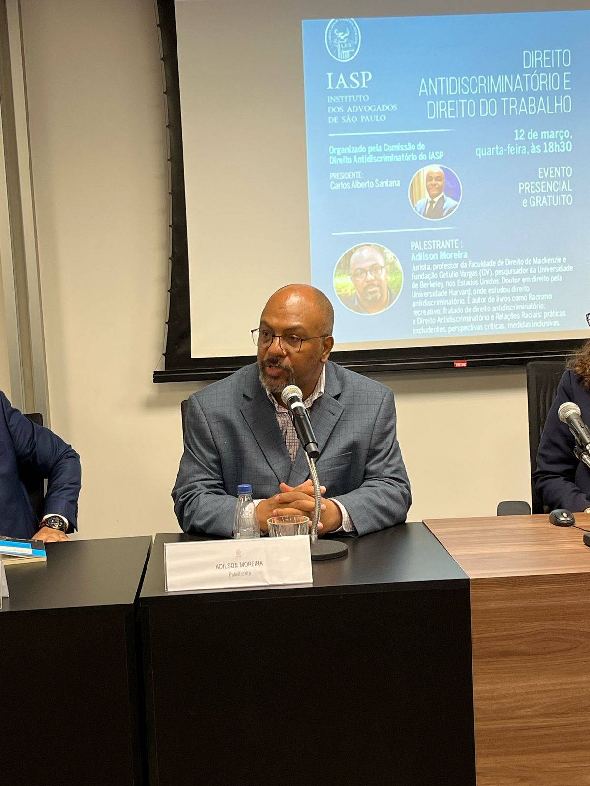 Professor das faculdades de Direito do Mackenzie e da FGV e doutor em Direito Antidiscriminatório, Moreira foi um dos palestrantes do encontro Direito Antidiscriminatório e Direito do Trabalho, promovido pelo Instituto dos Advogados de São Paulo (IASP) na noite de quarta-feira (12/3), reunindo especialistas para debater o impacto da discriminação no ambiente profissional. A iniciativa foi organizada pela Comissão de Direito Antidiscriminatório do IASP, presidida por Carlos Alberto Santana, que abriu o evento.