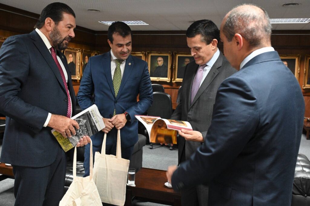 O presidente do Instituto dos Advogados de São Paulo (IASP), Diogo Machado de Melo, e o ex-presidente, Renato de Mello Jorge Silveira, realizaram uma visita institucional ao presidente do TRE-SP, Des. Silmar Fernandes, reafirmando a histórica parceria entre o Instituto e o Tribunal. Na ocasião, Renato Silveira entregou em mãos uma lembrança do IASP como forma de agradecimento pelas valiosas contribuições do Tribunal na construção dos 150 anos de história do Instituto.