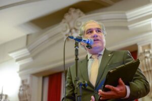 Diogo Melo presidiu a cerimônia e destacou a relevância simbólica do momento para a história do Instituto. “Celebramos a força da nossa história e o vigor do nosso presente. O IASP é a casa onde a academia, a advocacia e a magistratura se encontram em torno de um mesmo propósito: o bem comum. Aqui ninguém fala sozinho, o diálogo é a forma e o destino da nossa convivência”, afirmou.