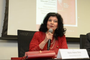 Na mesa da cerimônia, além da desembargadora e do presidente do IASP Diogo Leonardo Machado de Melo, também estavam presentes: Ivette Senise, ex-presidente do IASP; Maria Helena Diniz, professora titular de Direito Civil na PUC-SP; Ana Cristina Freire, coordenadora geral do livro; e Renato de Mello Jorge Silveira, ex-presidente do Instituto.