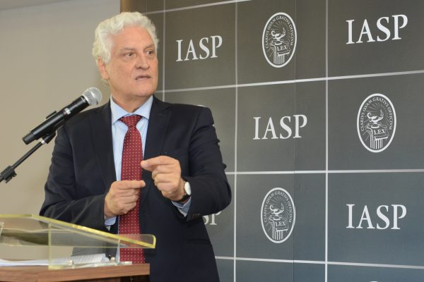 Na abertura, Diogo Leonardo Machado de Melo, presidente do IASP, ressaltou o papel do Instituto no debate público e na defesa de reformas estruturais. Destacou a importância de se enfrentar os desafios com responsabilidade: “Todavia, como temos sustentado, com uma absoluta serenidade que a tradição dessa casa impõe, nenhuma grande reforma deve servir de cortina de fumaça para ocultar providências mínimas e indispensáveis.”, afirmou.