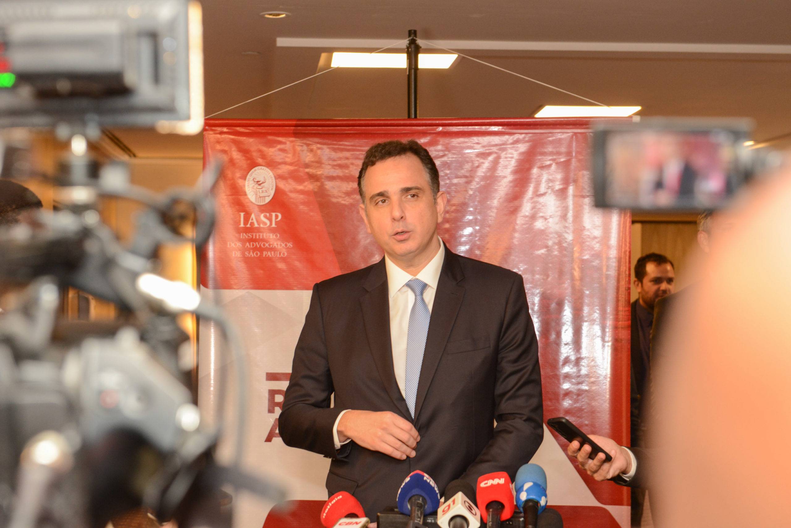 Antes do início da palestra, Pacheco louvou o aniversário de 150 anos IASP e sua “colaboração profícua às causas da sociedade brasileira, ao Estado de Direito, à Democracia e às liberdades públicas”. Como advogado de formação, frisou seu apreço pela advocacia e pela importância do papel dos advogados no cenário nacional.