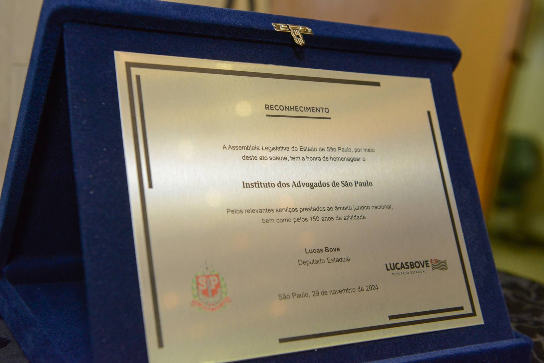 Na manhã do dia 29 de novembro, a Assembleia Legislativa do Estado de São Paulo (ALESP) realizou sessão solene para celebrar os 150 anos do Instituto dos Advogados de São Paulo (IASP). A cerimônia, presidida pelo deputado estadual e proponente da homenagem, Lucas Bove (PL-SP), destacou o legado do IASP na defesa do direito, da democracia e da formação de advogados ao longo das últimas décadas.