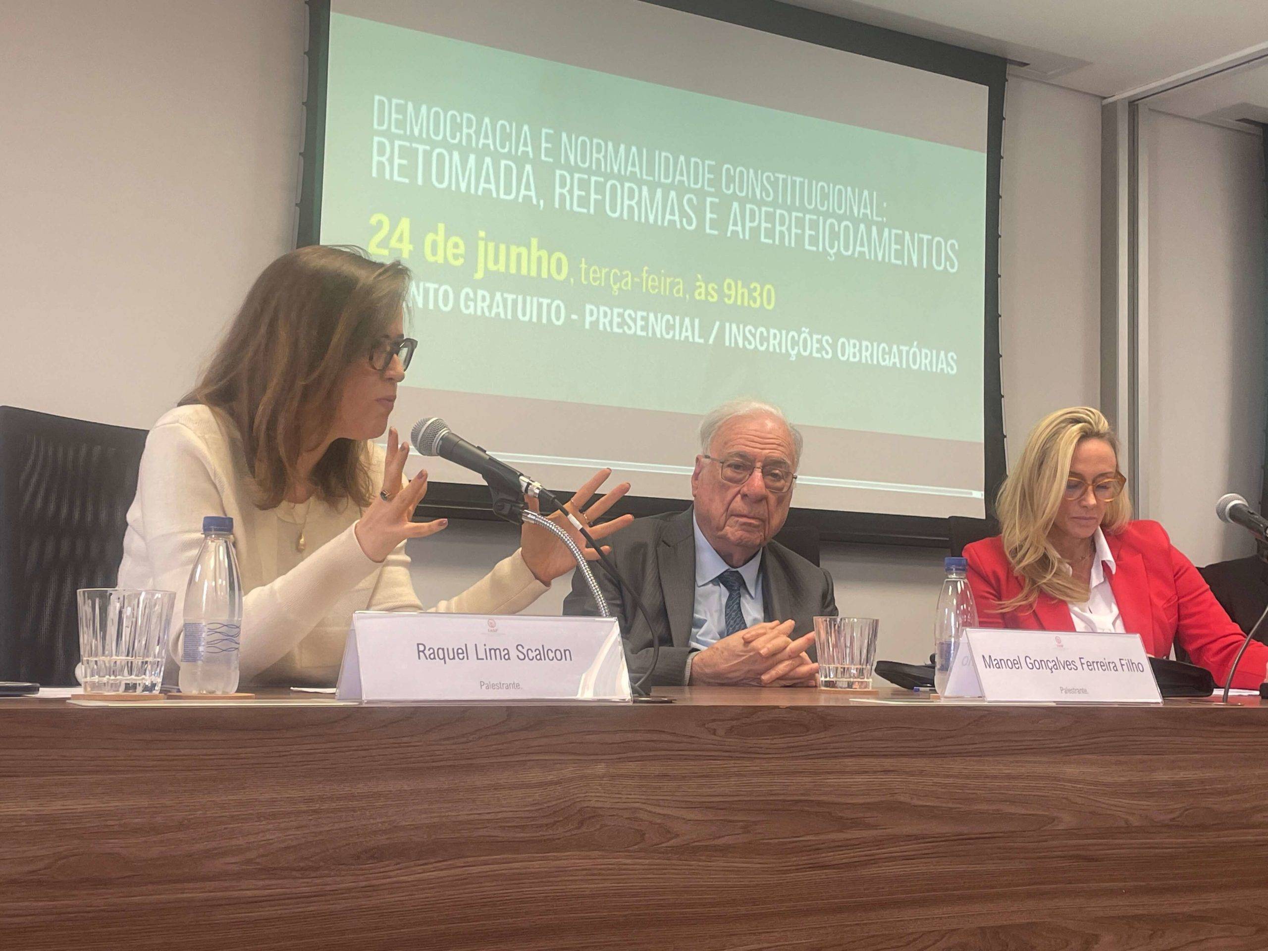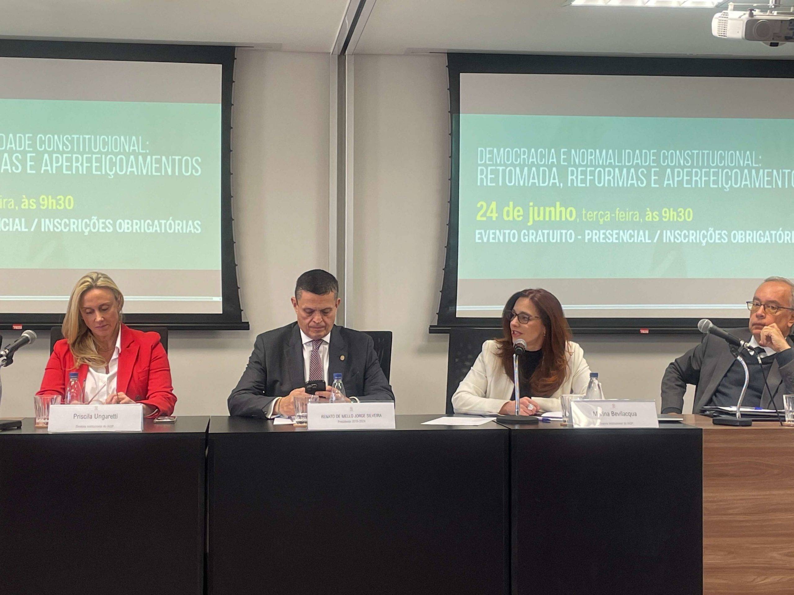 Marina Bevilacqua destacou que o debate acontece em um momento delicado para o constitucionalismo brasileiro e frisou que o Direito carece de uma conversa mais eficiente. Priscila Ungaretti reforçou a importância de se fomentar um ambiente institucional que favoreça reflexões técnicas.