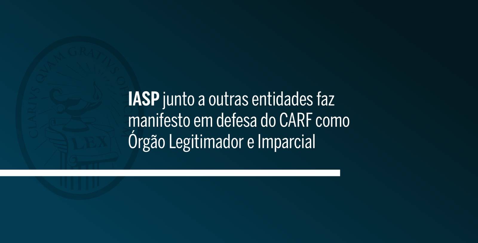 Em conjunto com outras entidades (AASP, CESA, IAB, IASC, MDA, OAB/SP e SINA), o Instituto dos Advogados de São Paulo (IASP) assinou nota em defesa do Conselho Administrativo de Recursos Fiscais (CARF) como órgão legitimador e imparcial.