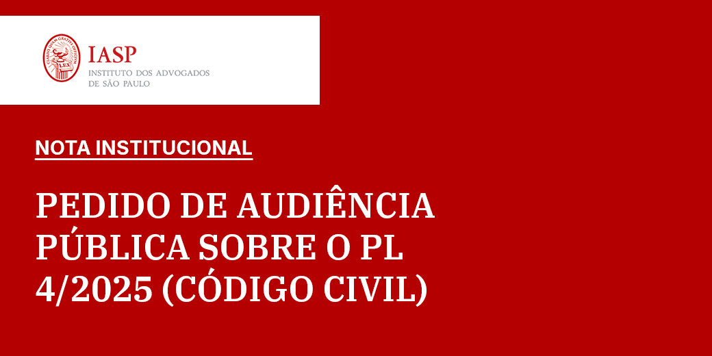 NOTA INSTITUCIONAL O Instituto dos Advogados de São Paulo (IASP) informa que, na data de hoje, dia 17/10, formalizou ao Presidente da Comissão Temporária […]