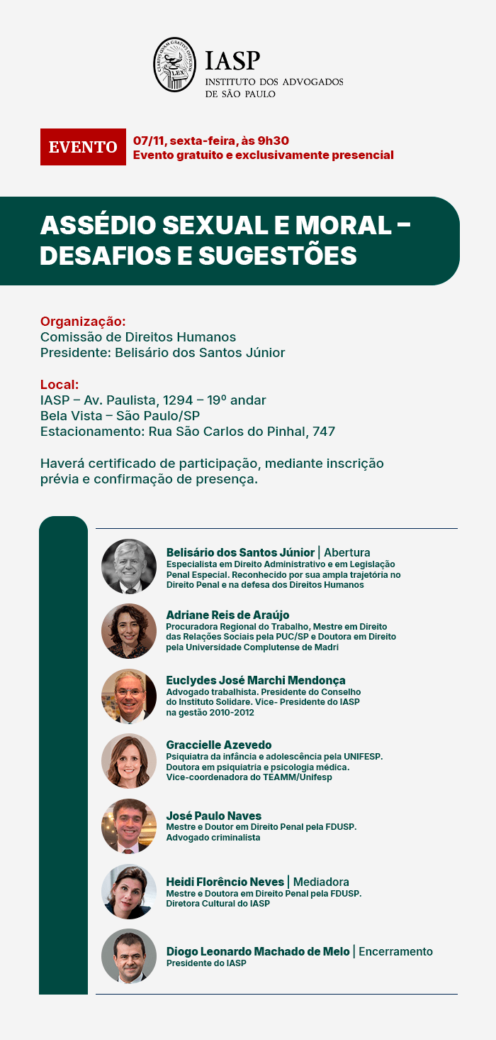 IASP – Av. Paulista, 1294 – 19º andar – Bela Vista – São Paulo/SP