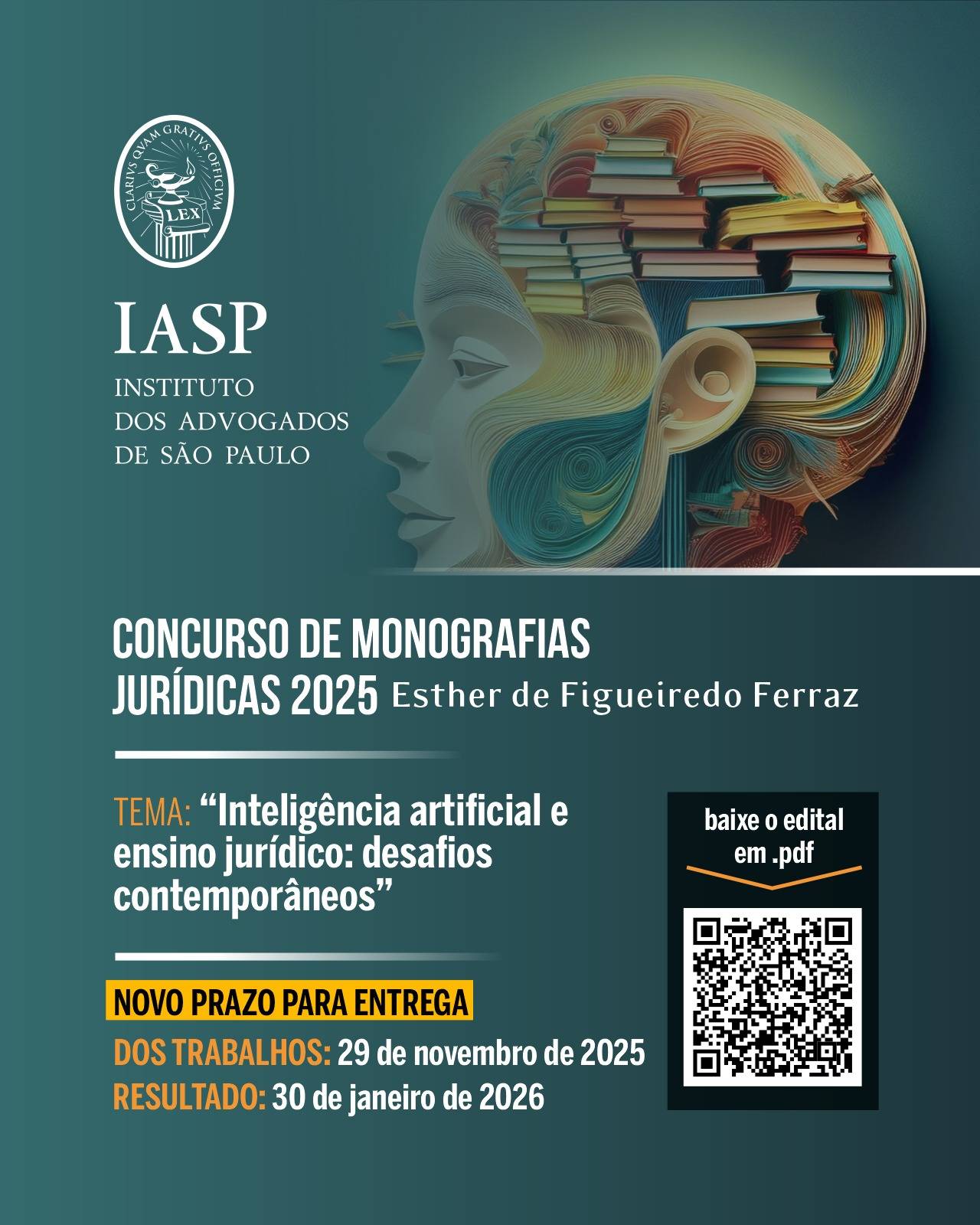 O Instituto dos Advogados de São Paulo (IASP), dentre as inúmeras iniciativas preparadas para o mês de Agosto, abriu as inscrições para o Concurso de Monografias Jurídicas Esther de Figueiredo Ferraz – Edição 2025. Agora em formato anual, a iniciativa reforça o compromisso do Instituto com a excelência acadêmica e a produção de conhecimento jurídico.