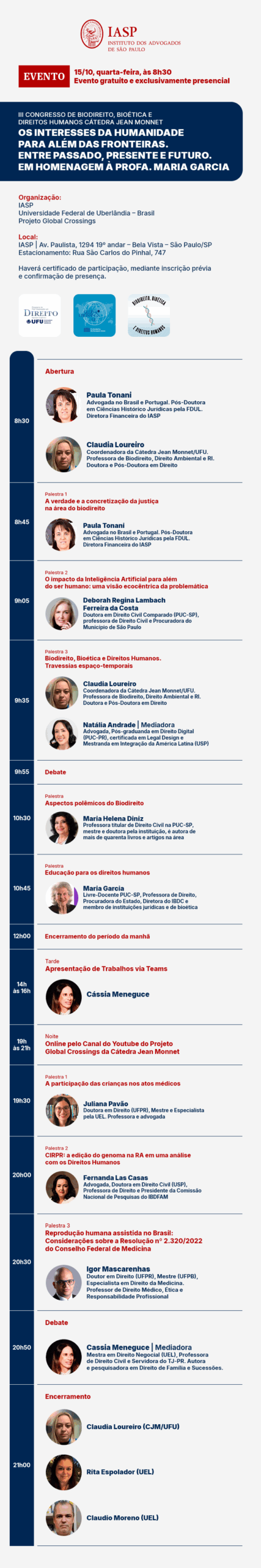 III Congresso de biodireito, bioética e direitos humanos Cátedra Jean Monnet – Os interesses da humanidade para além das fronteiras. Entre passado, presente e futuro