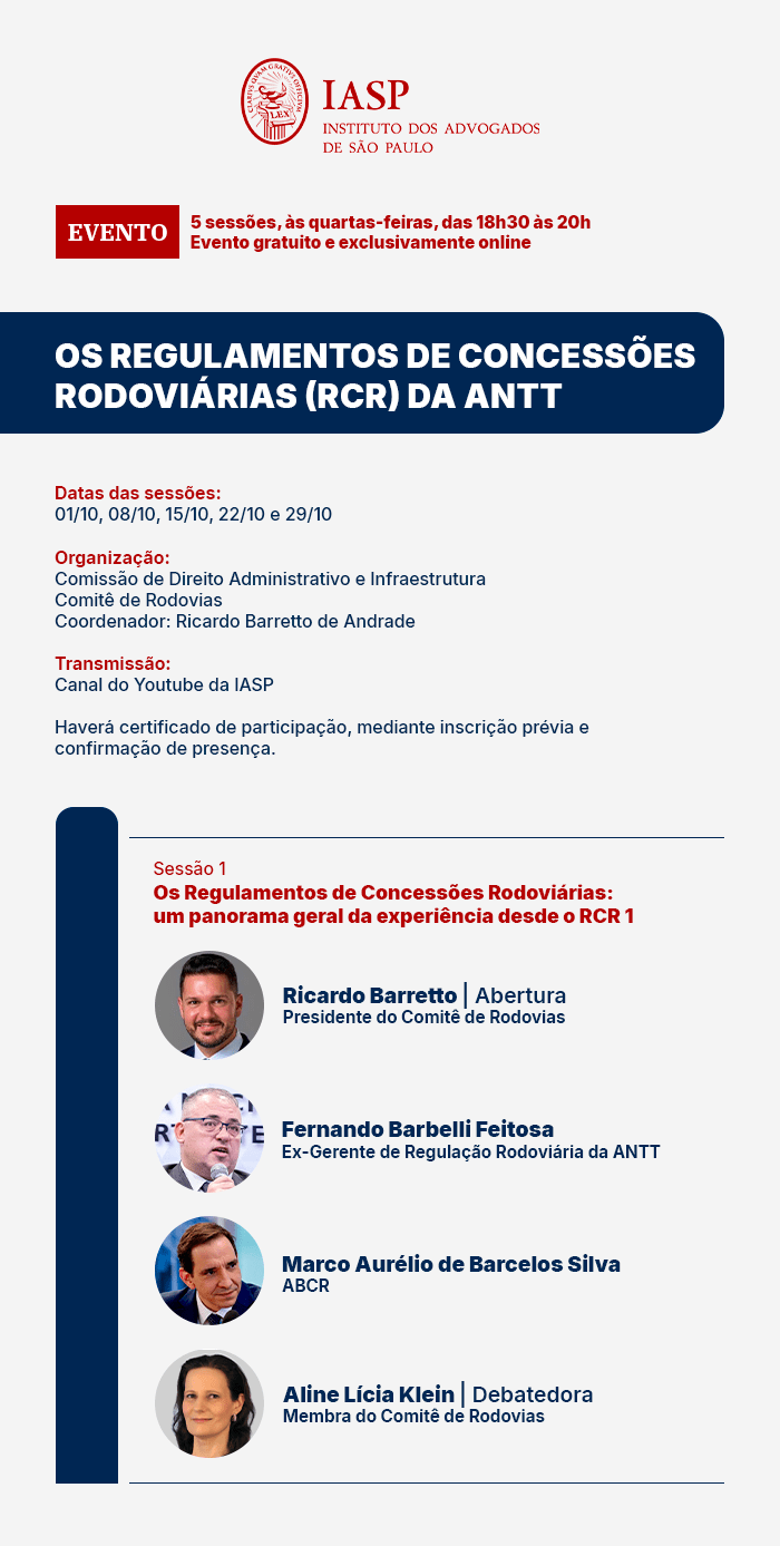 Sessão 1: Os Regulamentos de Concessões Rodoviárias: um panorama geral da experiência desde o RCR 1