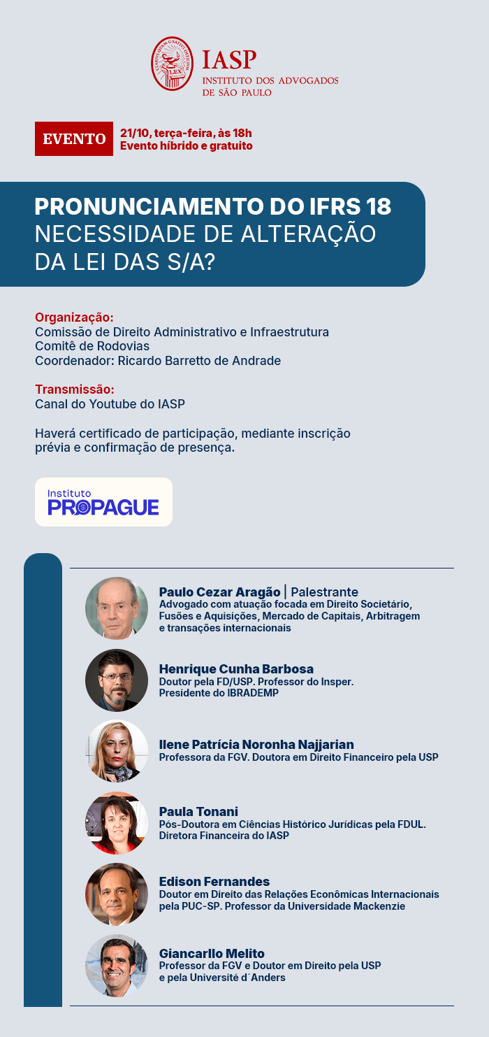 Evento híbrido e gratuito com transmissão via canal do IASP no YouTube