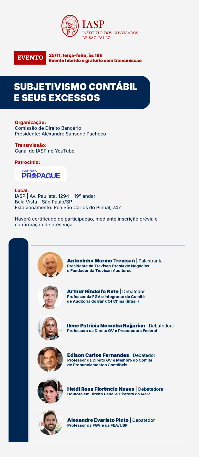 Evento híbrido e gratuito com transmissão via canal do IASP no YouTube