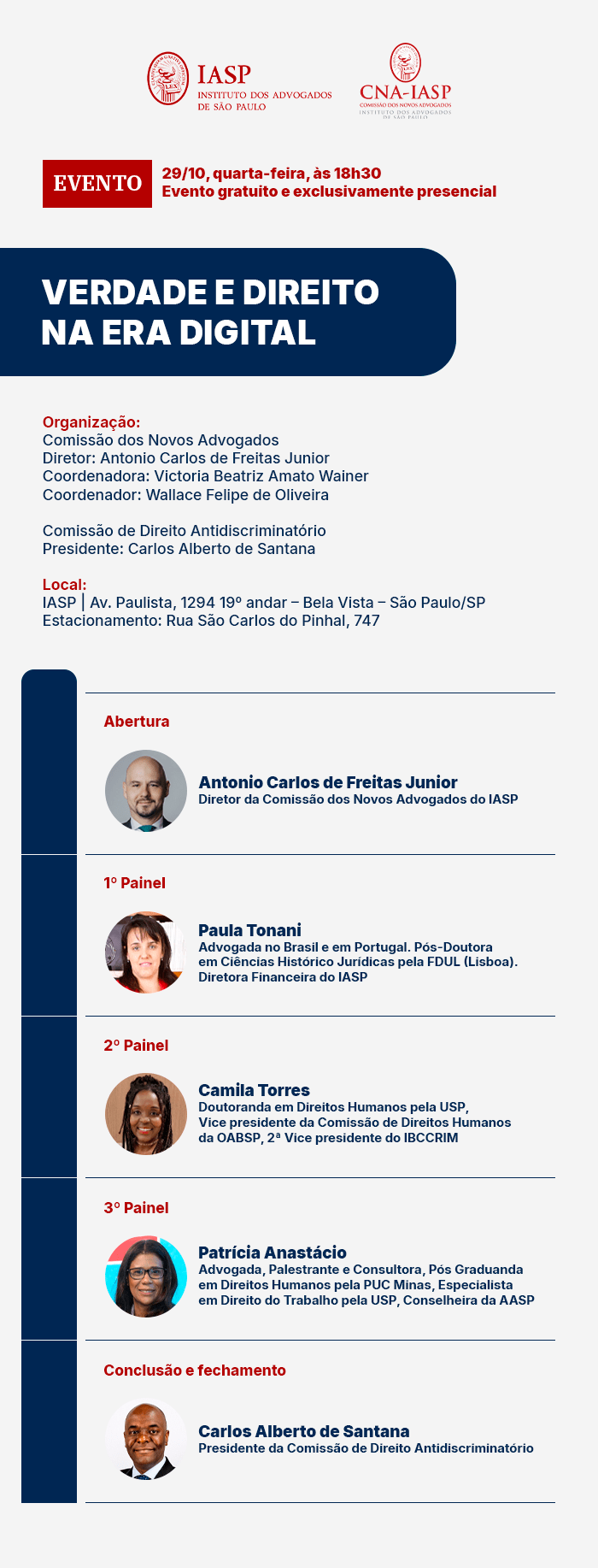 Evento gratuito e exclusivamente presencial
